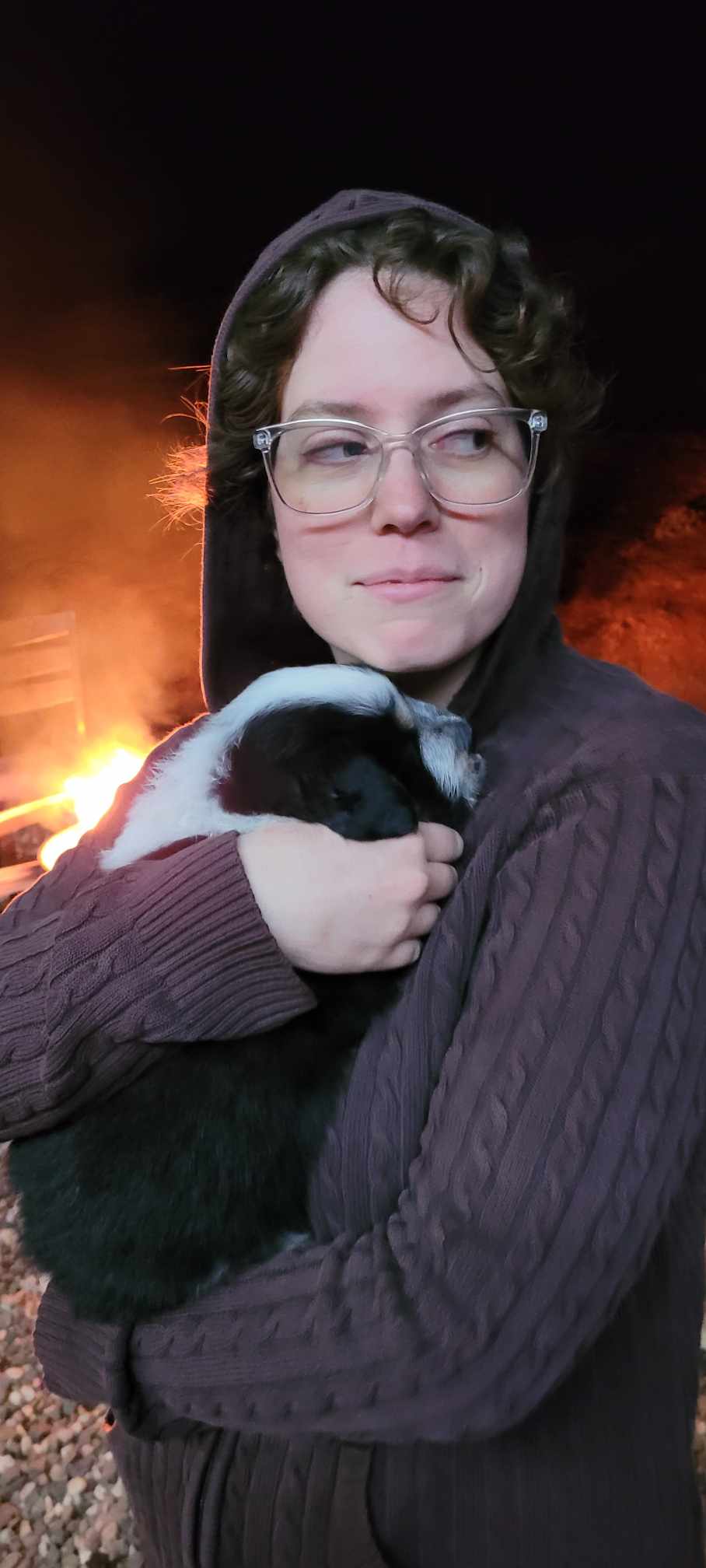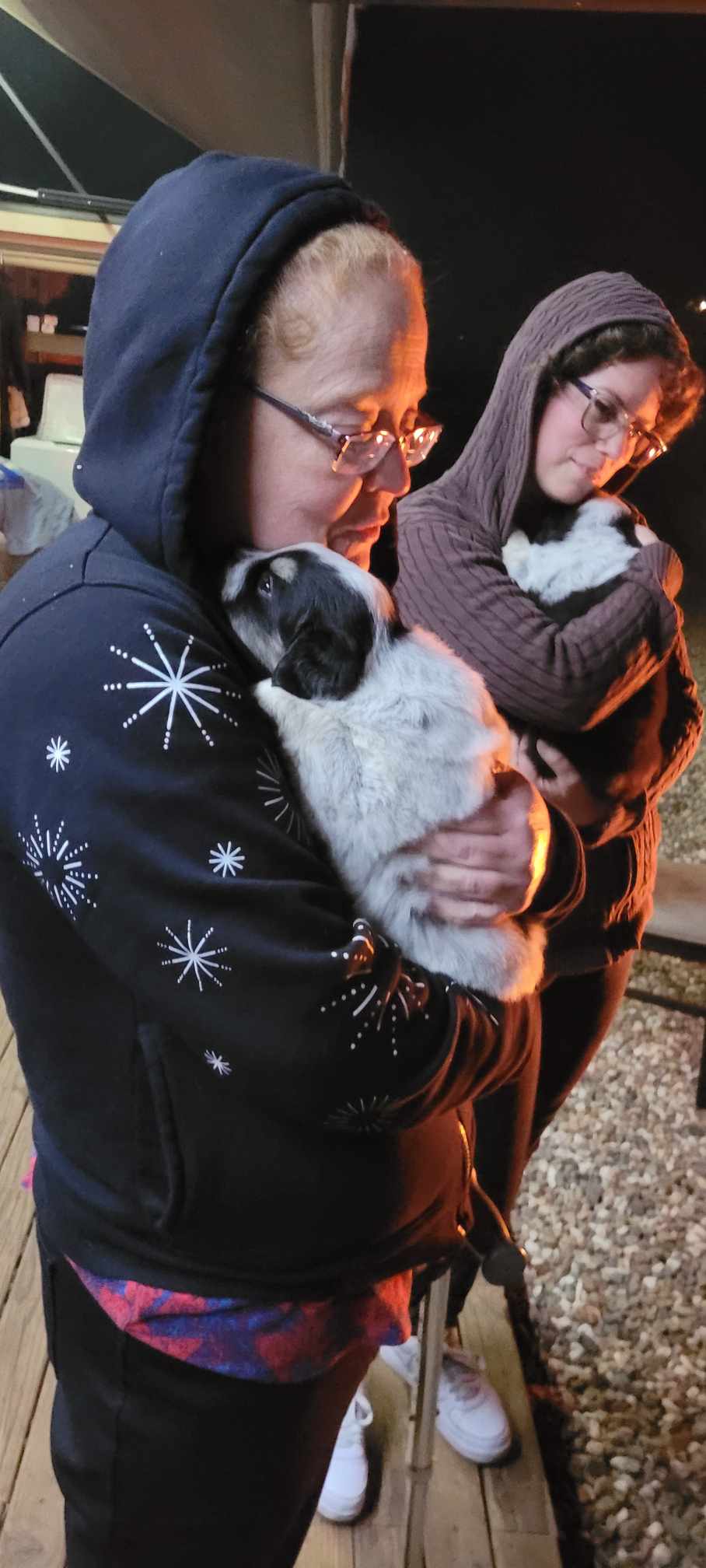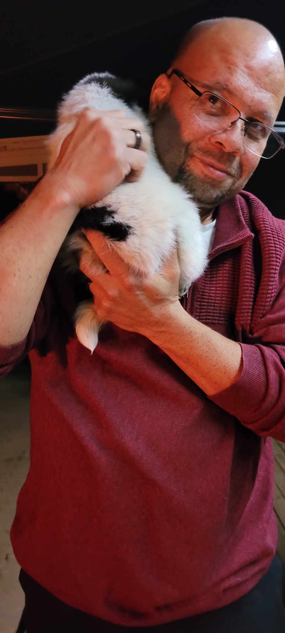 Dez holding the male pup that stayed behind. I know he wishes we could have taken him too!